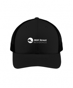 Retro trucker cap with 100% polyester mesh back panel.