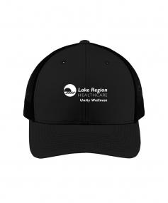 Retro trucker cap with 100% polyester mesh back panel.