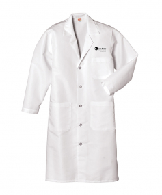 Our IL50-strength lab coat has side vent openings to allow you access to your clothing. 5-Ounce, 80/20 poly/combed cotton performance blend poplin with one-piece, lined, notched lapel. Left chest patch pocket with bartacked pencil stall. Features two lower pockets and 5-button closure.