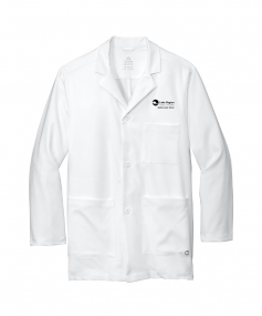 This lab coat is made with 65/35 poly/cotton poplin and features a locker loop, left chest pocket with pen slot, top-loading front pockets, an interior tablet pocket, a back yoke with pleats, a 3-button placket opening, center back vent, and the WonderWink® heat transfer logo at left pocket. Medium size is 31.5" back length.